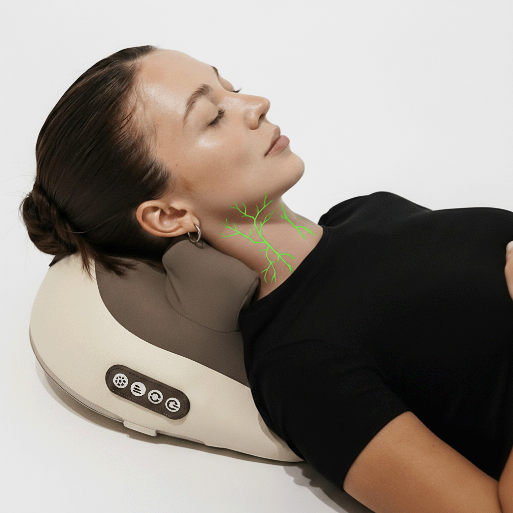 ابدأ صباحك بنشاط: ضع الجهاز على رقبتك، ودع الحرارة الخفيفة والحركات الإيقاعية تفتح مسارات التصريف، تقلل الانتفاخ وتخفف التوتر خلال 10 دقائق. استيقظ منتعشًا بعقل صافي وطاقة متجددة.